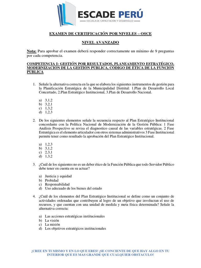 Banco De Preguntas Osce Examen 01. Planeamiento estratégico, modernización de la gestión pública, código de ética de la función pública 1. Para ello debe tomarse en cuenta la siguiente regla: