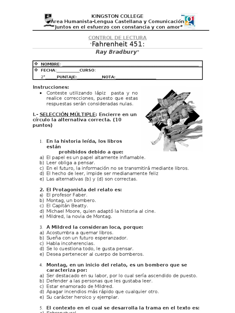 Preguntas De Examen Sobre Fahrenheit 451. Cuestionario guía de análisis de fahrenheit 451 de ray bradbury. 3) ¿por qué esta novela pertenece al género de la ciencia ficción?
