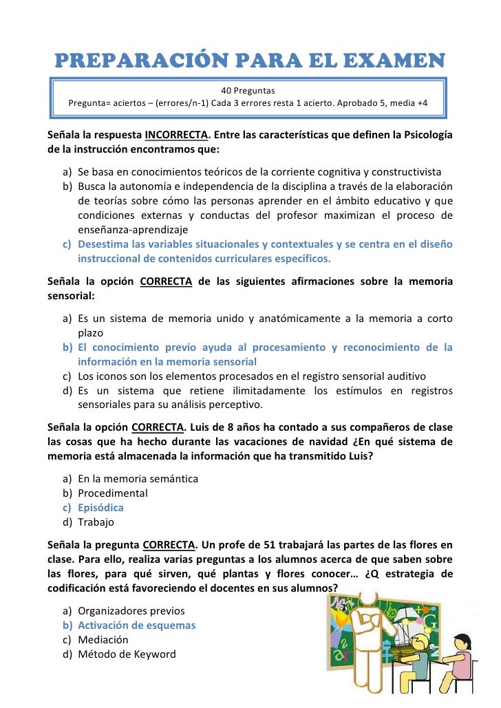 El examen contiene 40 preguntas y tiene una duración de 40 minutos, y para su aprobación, el postulante deberá de acertar por lo menos treinta y cinco (35) respuestas de las cuarenta (40) los componentes de este examen son temas de: En un examen de 40 preguntas diego ha obtenido 7 de calificación. Pongamos que se trata de un examen de 100 preguntas con 4 respuestas alternativas, que se va a corregir con la fórmula del azar, que suele ser la más frecuente: El examen escrito del dol es un examen de 40 preguntas de selección múltiple, y usted debe responder correctamente a un mínimo de 32 para poder pasar.