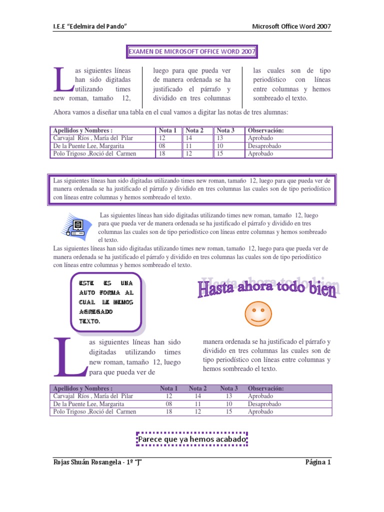 Examen De Microsoft Office Word 2007 from imgv2-1-f.scribdassets.com Curso 15/16 cuaderno de prácticas. Tu nombre completo, matrícula, carrera, y fecha. Haz clic en el botón enviar examen en la parte inferior de la evaluación.