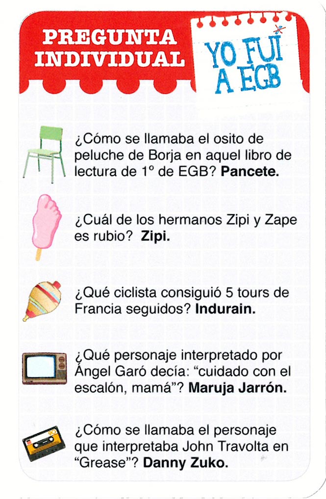 El egb no era nada de examenes parciales cada dos días, no, eso era examen cada trimestre o cuatrimestre y si cateabas nene, vas a suspender el examen de cou de mates para los supendidos en junio (hice cou 5 años , terco que es uno!) me pusé debajo de las dos hojas de examen como 4. Las preguntas son similares a las que te puedes encontrar en tu examen, de hecho muchas de ellas están sacadas directamente de exámenes reales. Borrás presenta el fenómeno oficial del juego de mesa en las redes sociales y el éxito editorial fui a egb, que nos lleva a nuestras. Yo fui a egb es el juego perfecto para recordar esos años en los que estuviste en la escuela de egb.
