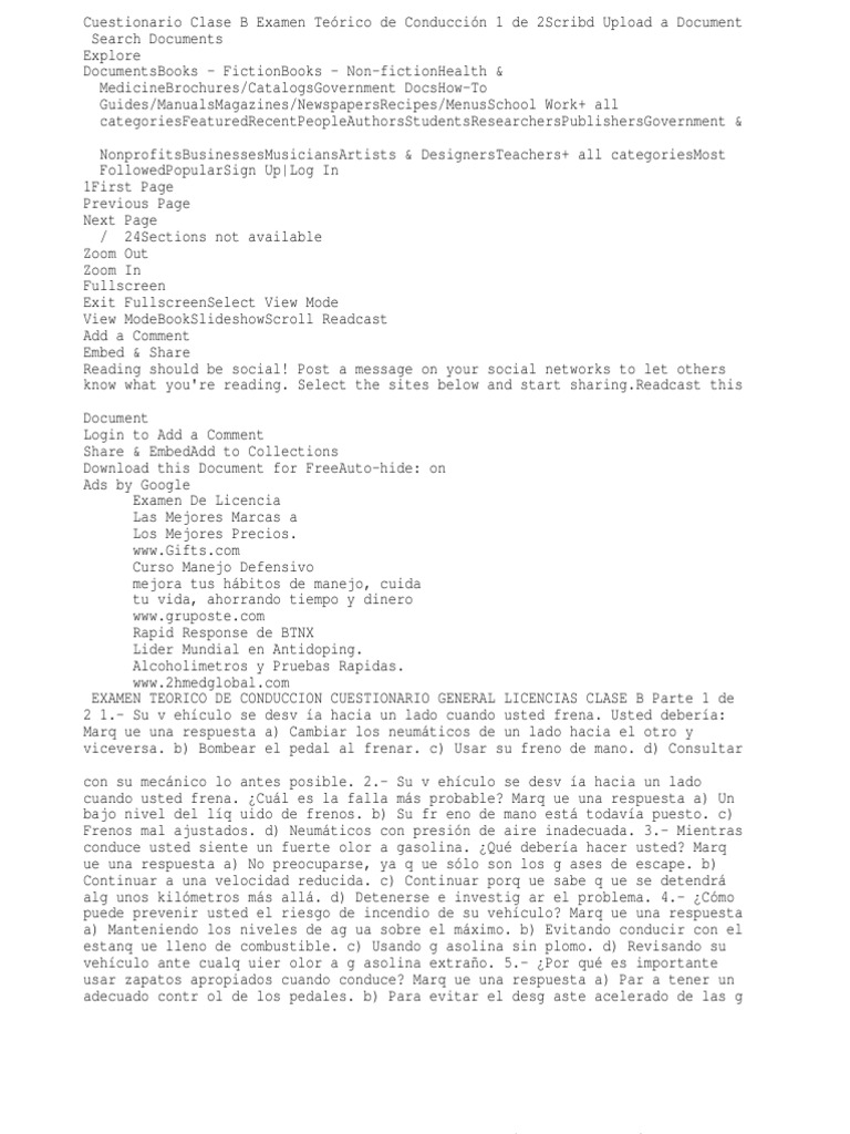 Preguntas De Examen Teórico De Conducción Clase B. Consta de 280 preguntas y sus correspondientes respuestas. Cuestionario general licencias clase b.