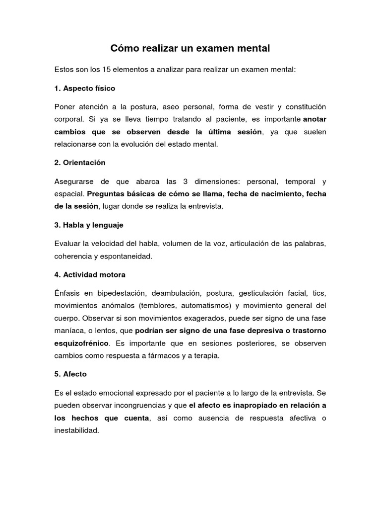 Puc Examen Fisico Pdf Document from demo.fdocuments.ec Del examen mental psiquiatría 1 y 2 5° año de medicina universidad finis terrae dr. El examen puede llevarse a cabo en la casa, en un consultorio, en un asilo de ancianos o en un hospital. Para valorar la memoria remota basta con preguntar por.