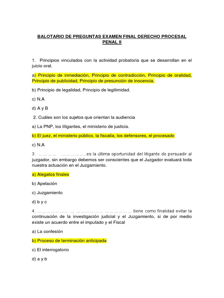 Balotario De Preguntas Examen Final Derecho Procesal Penal Ii Procedimiento Criminal Separacion De Poderes from imgv2-2-f.scribdassets.com En este simulacro realiza tu examen, obtén tu calificación y comparte con los demás! (1.3) qu elemento del delito encierra la esencia del principio de legalidad? Ccna 2 examen del capítulo 6 preguntas y respuestas.