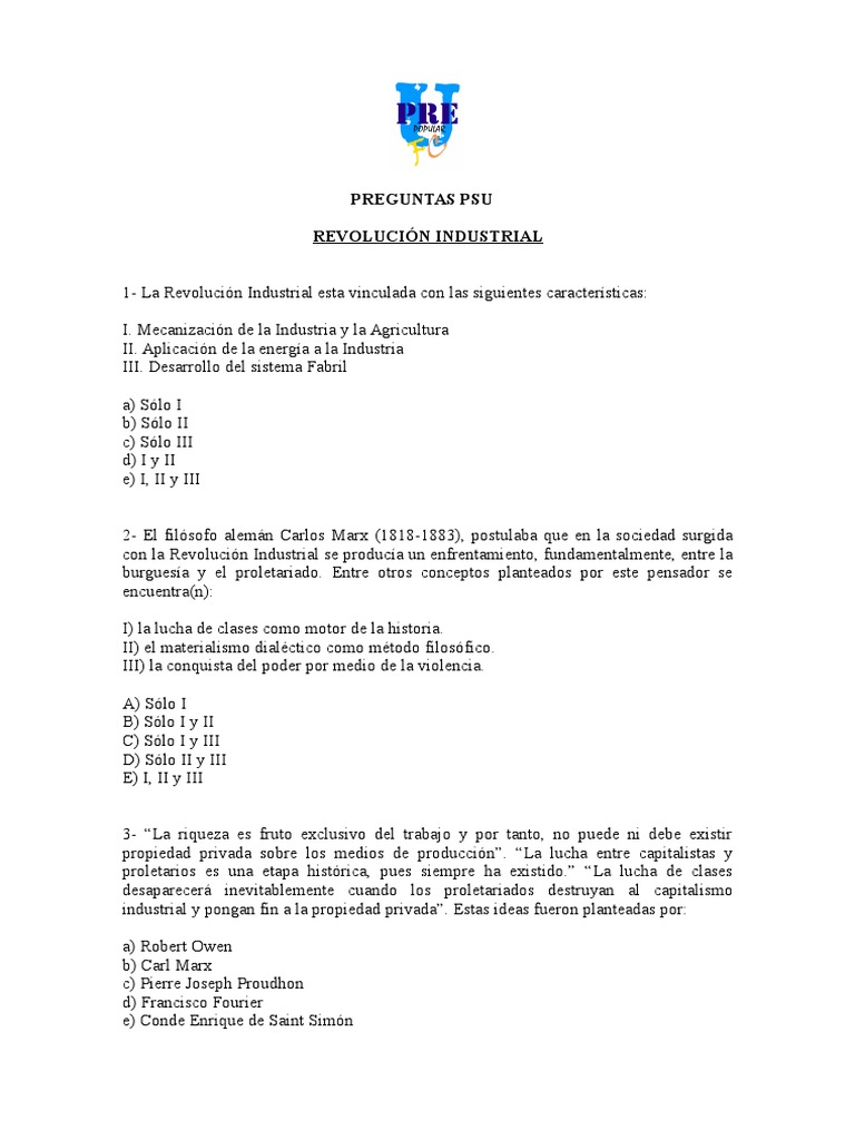 Preguntas De Examen Revolución Industrial. La revolución industrial comenzó en gran bretaña 2. 0%0% encontró este documento útil, marcar este documento como útil.