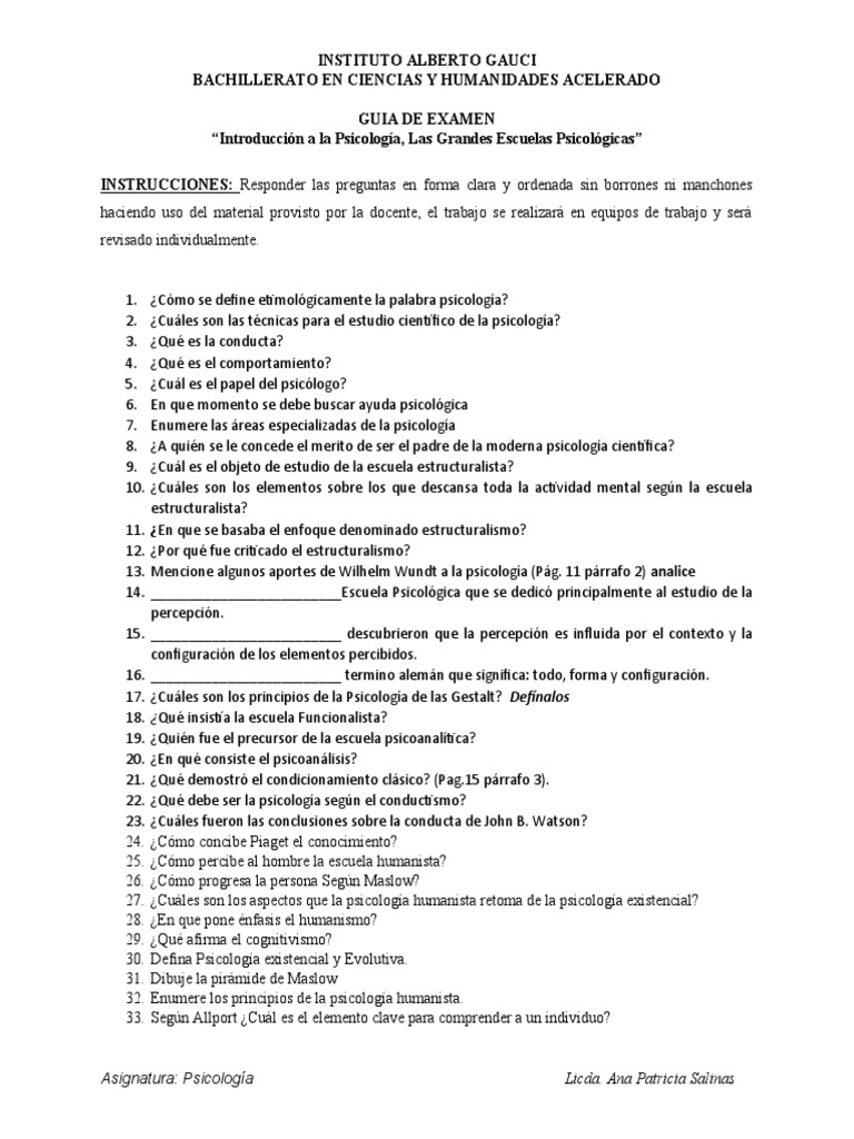 Preguntas De Examen Introduccion A La Psicologia. Factores que influyen en el delincuente 5. 2 de los siguientes enunciados cuales son ramas dela psicologia 3 que es estructuralismo.