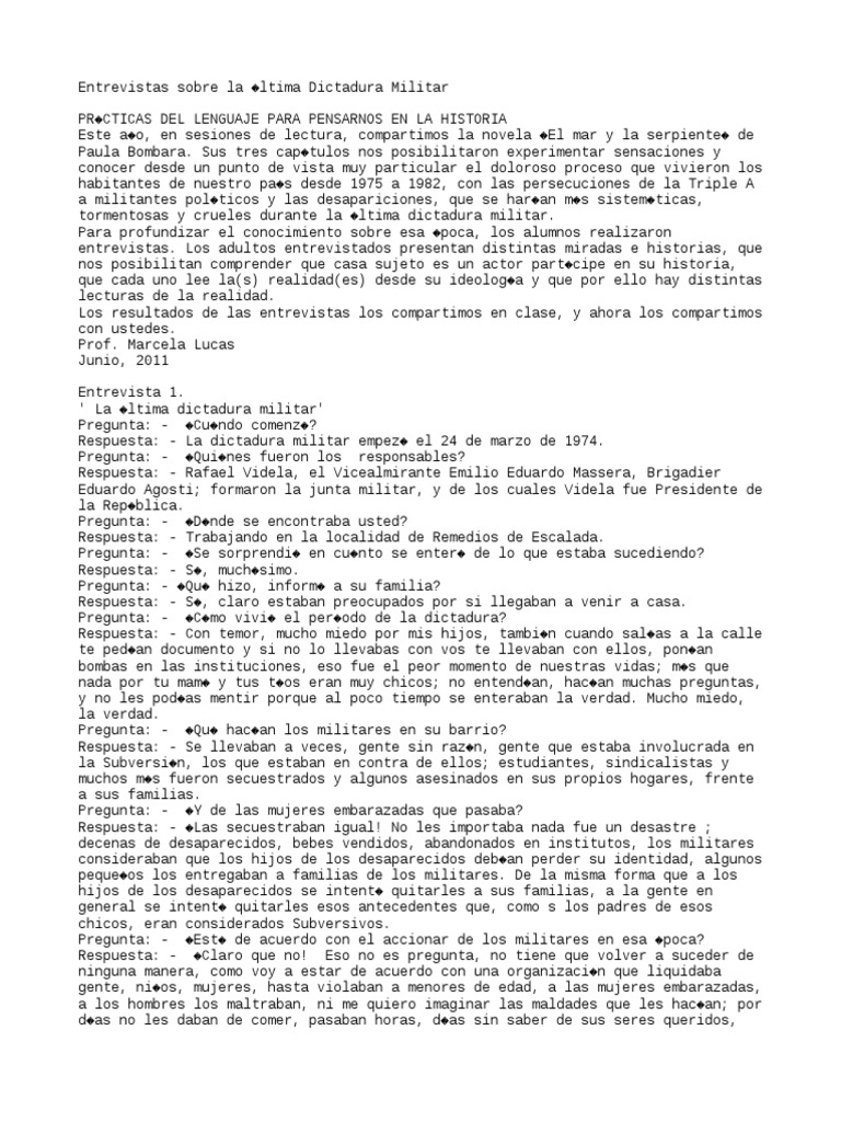 Entrevistas Sobre La Ultima Dictadura Militar Pdf Agitacion Politica General