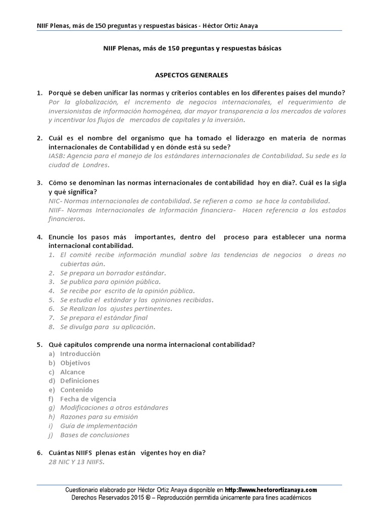 Niif Plenas Mas De 150 Preguntas Y Respuestas Basicas Aspectos Generales Pdf Free Download