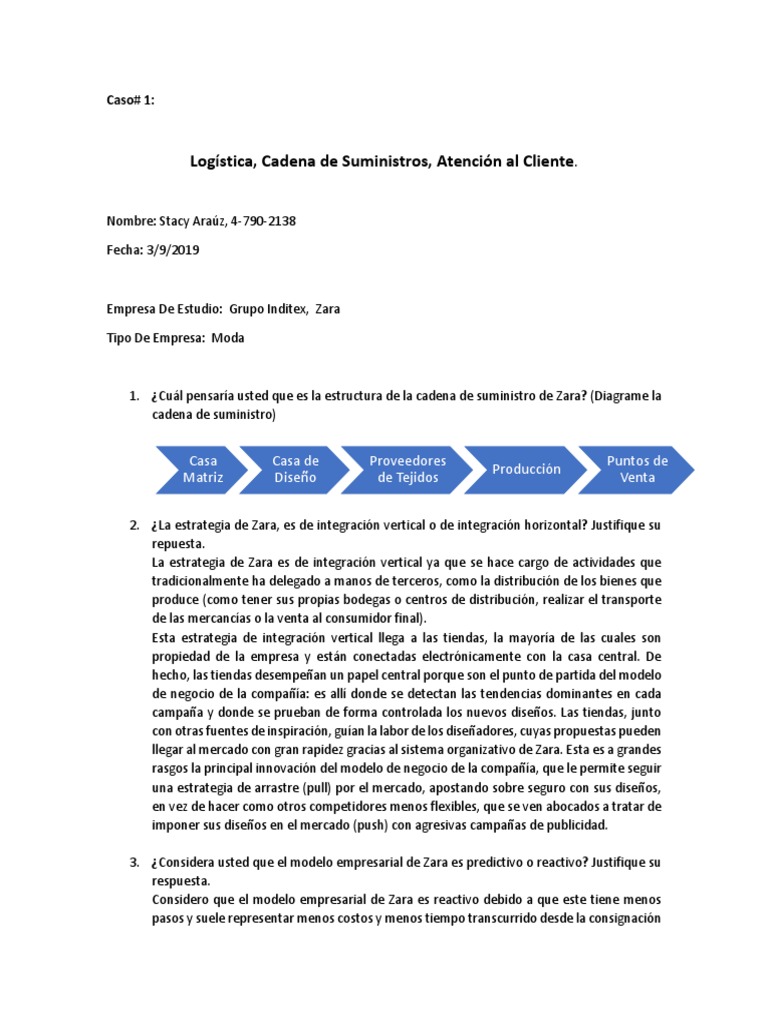 Caso Zara Preguntas Resueltas Caso Zara Estudiante Barraza Zavala Carlo Renato Asignatura Studocu