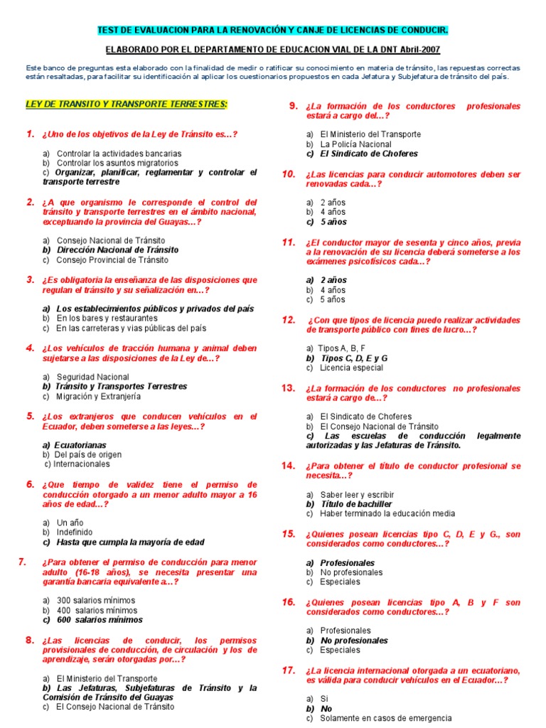 Funciona con un novedoso algoritmo de inteligencia artificial que realiza las preguntas de forma aleatoria. 1 Preguntas de examen - Categoría B Este documento contiene las preguntas que corresponden al examen teórico para la obtención de la licencia de conducir de la categoría B. 15 años atrás el examen teórico para obtener licencias.