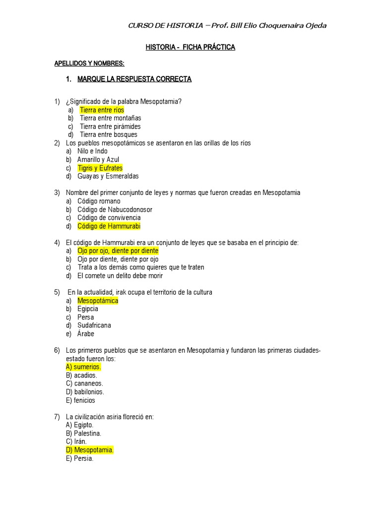 Taller Tipo Test Antigua Mesopotamia Respuestas Pdf Mesopotamia Asiria