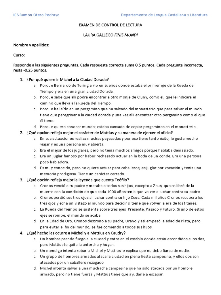Examen Finis Mundi Con Solucion Pdf La Rueda Del Tiempo