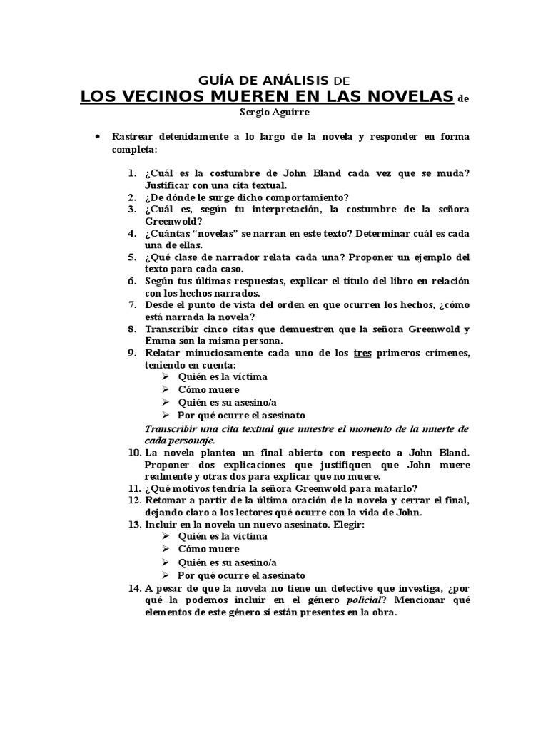 Guia De Lectura Los Vecinos Mueren En Las Novelas